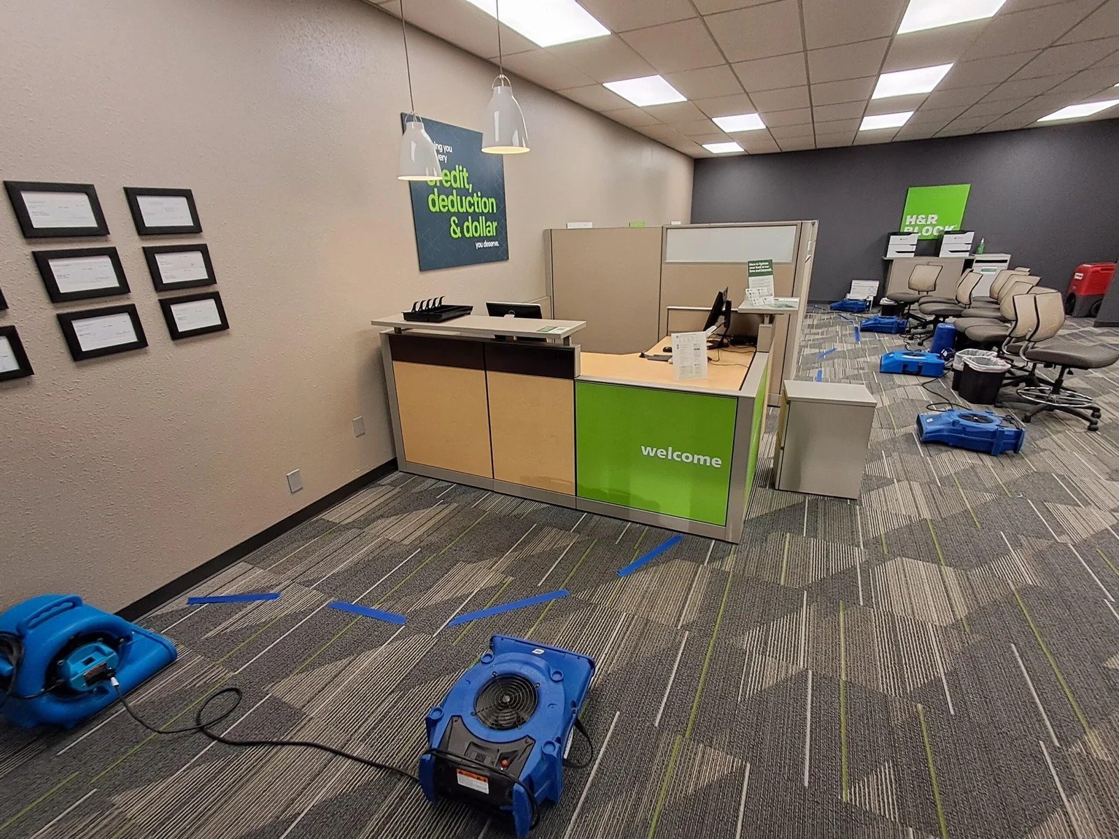Commercial extractors remove standing water while containment barriers isolate unaffected areas. Result: Fast removal, clean containment, and minimized disruption.